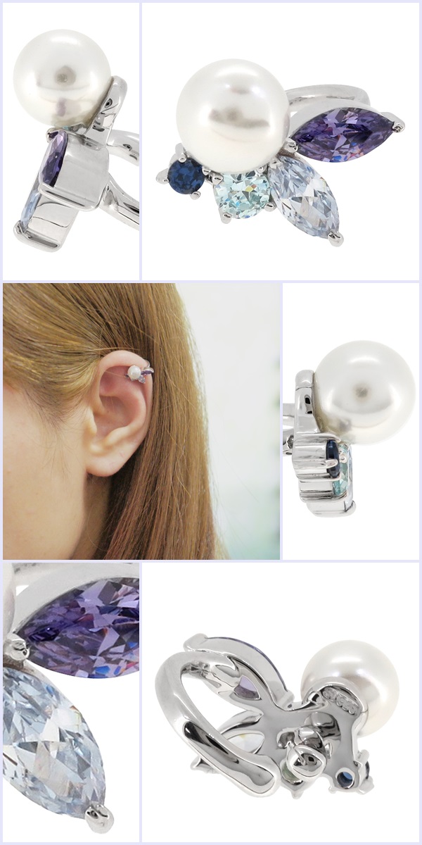 パールを中心に4色のカラージルコニアが煌めくイヤーカフ。