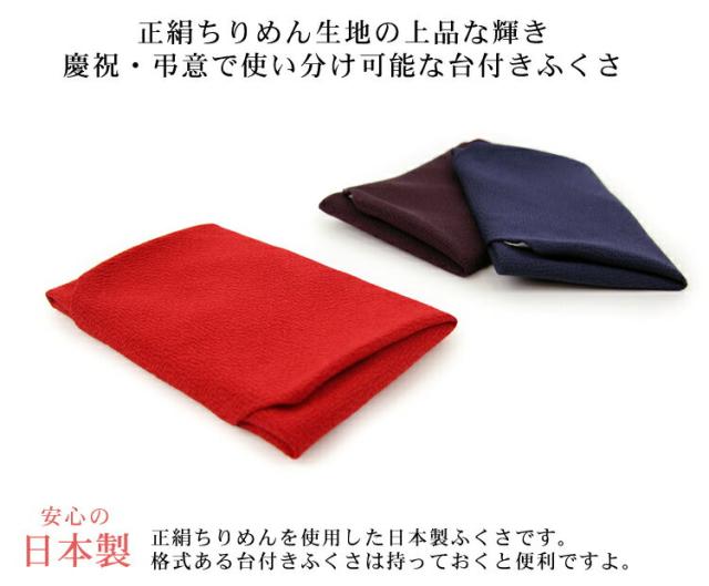 〔zu〕「日本製 正絹ちりめん台付きふくさ」全3色慶弔両用 袱紗 祝儀袋 不祝儀袋