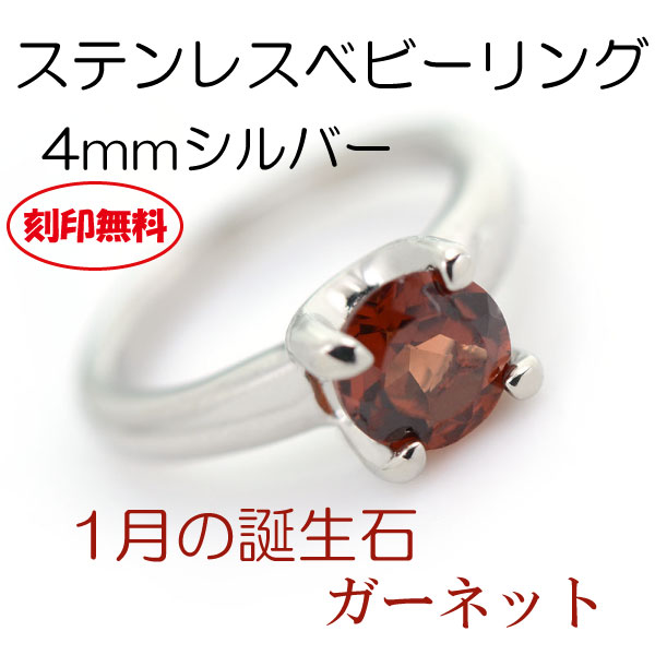 ベビーリング 誕生石 ガーネット 送料無料 刻印無料 ステンレス 1月 4mm サージカルステンレス