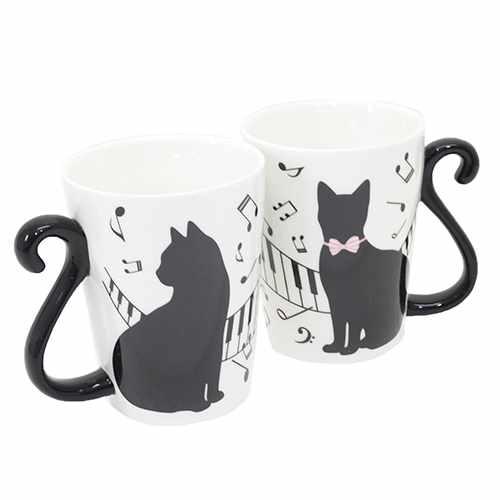 「クロネコ マグカップ ペアマグカップ2個セット ピアノ ギフト食器」