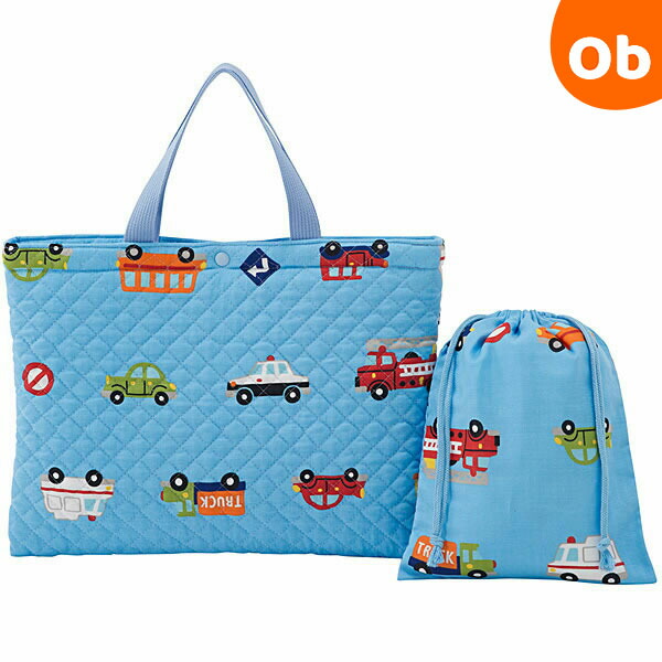 キルティング レッスンバッグ 巾着袋(小物入れ)付き くるまパーク ブルー フジキ 【手提げ お稽古 保育園 入園 小学校 小学生 ピアノ 習い事 日