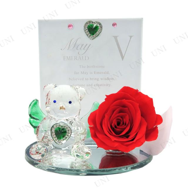 バースデーベアー 5月 (エメラルド) 九州フラワーサービス プリザーブドフラワー インテリア用品 大人 誕生日 ハンドメイド クリスタル付き