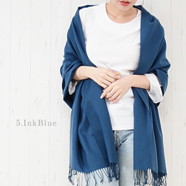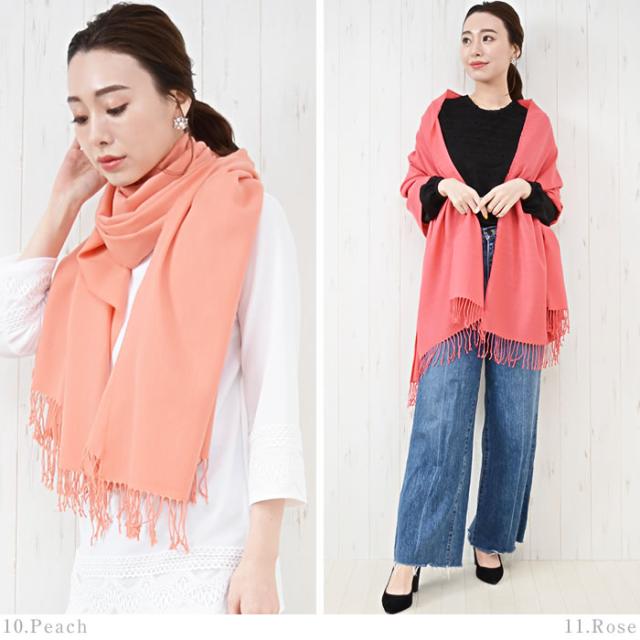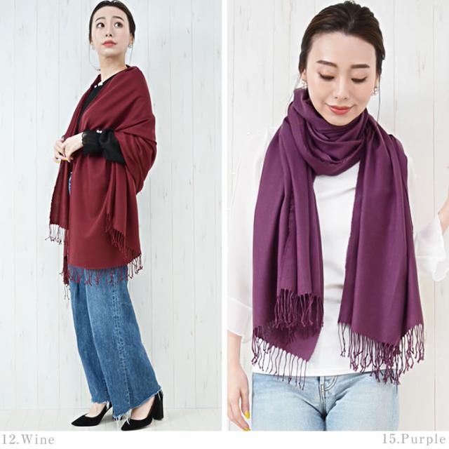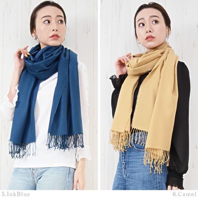 ベーシックに使えるパシュミナタッチで肌触りの良い、無地のストールです。