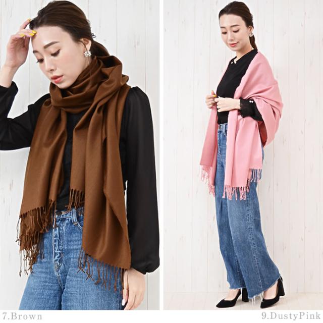 無地のストールは使い道が豊富で、女性なら1枚は必ず持っていたいアイテムです。