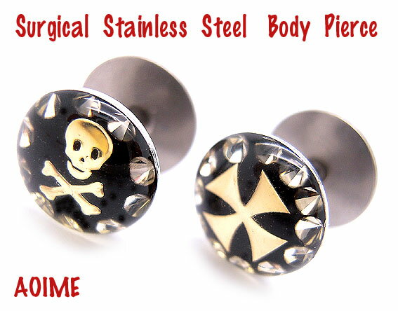 スカル 髑髏 クロス 正十字 ヘリックス トラガス 軟骨ピアス ストレートバーベル/16Gボディピアス bp530-531