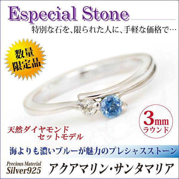 アクアマリン サンタマリア 送料無料 刻印無料 シルバー925 誕生石 脇石ダイヤモンド ツインストーン 指輪 単品 宅配便