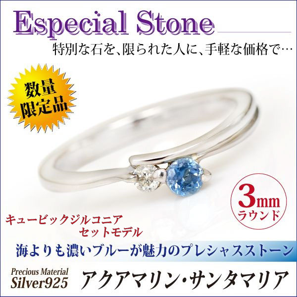 アクアマリン サンタマリア 送料無料 刻印無料 シルバー925 誕生石 脇石キュービックジルコニア 指輪 単品