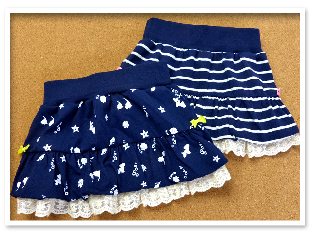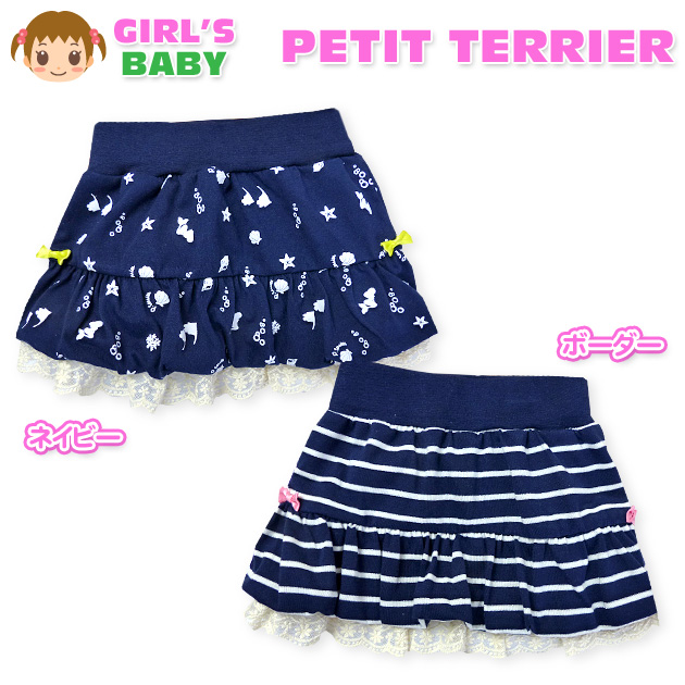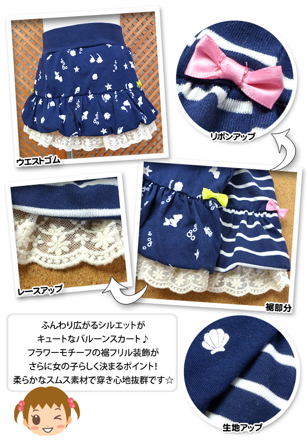 【送料無料】ベビー服 女の子 バルーン スカート ボトム マリン柄 ボーダー リボン レース ウエストゴム 女児 ベビー【メール便対応】