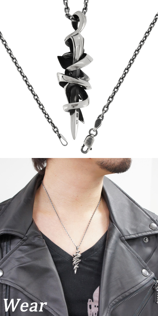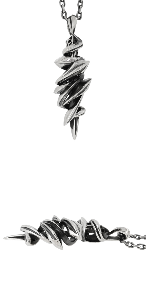 シャープな剣にツルが幾重にも絡まったようなデザインのペンダントトップ。