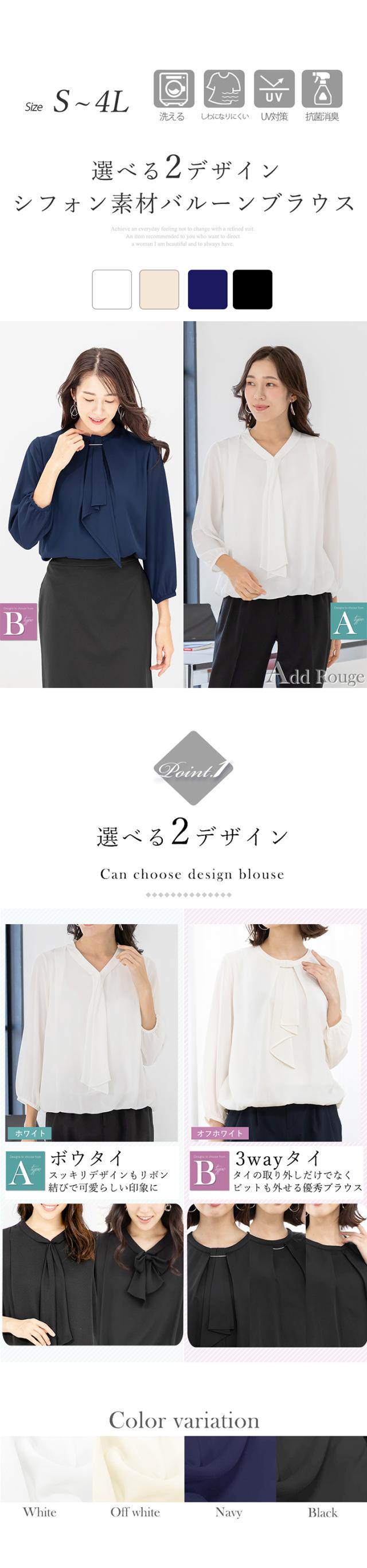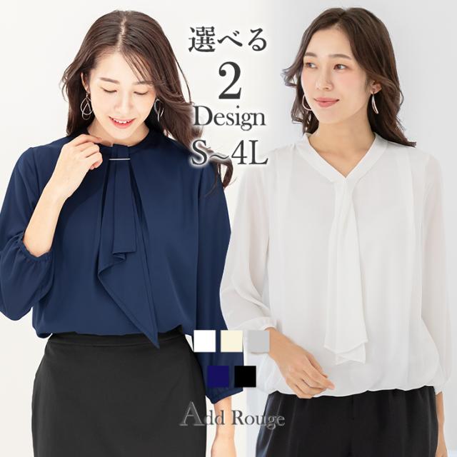 【メール便送料無料】ブラウス ボウタイ トップス レディース 七分袖 オフィス フォーマル スーツ インナー 白 シフォン 大きいサイズ 体型カバー j4125 [M便 1/2]