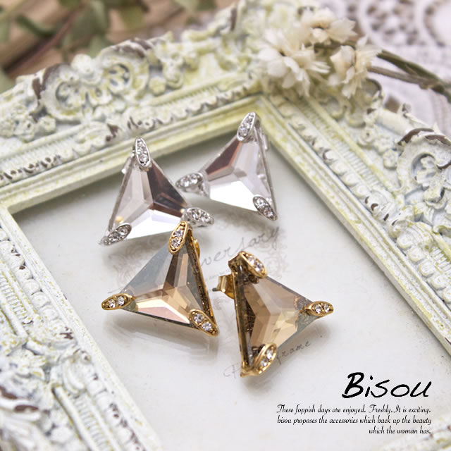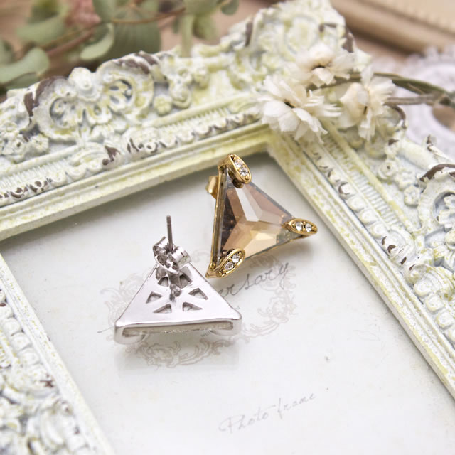【光輝くトライアングルピアス】スタッドピアス/ラインストーン/スワロフスキー/トライアングル/三角形/ゴールド/シルバー/金/銀