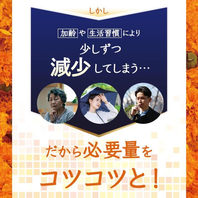 主要原料(1粒あたり):マリーゴールド色素製剤 40mg(フリールテインとして8mg)