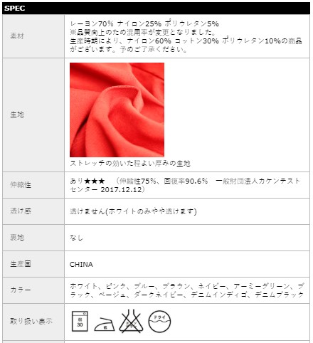 ■商品詳細 [素材] レーヨン70% ナイロン25% ポリウレタン5%