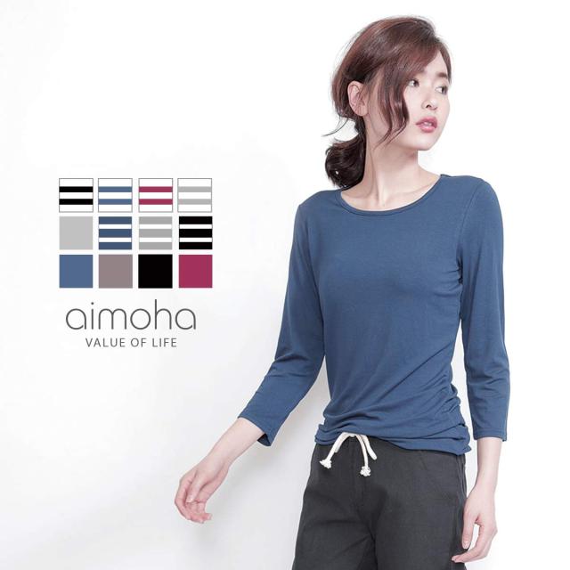 ベーシックロングスリーブクルーネックTシャツ[無地/ボーダー]/七分丈/カットソー/ロンティー/ティーシャツ/トップス/カット/