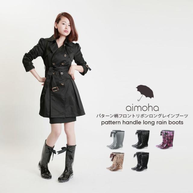 梅雨対策 おしゃれ お洒落 レインブーツ ロング 送料無料 パターン柄フロントリボン 完全防水 ラバーブーツ レインシューズ 長靴 雨靴 ガーデニングブーツ レディース 台風 梅雨 雨