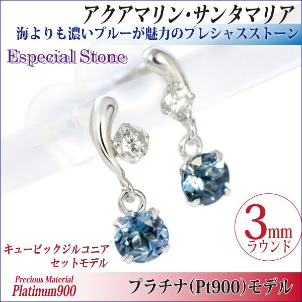 アクアマリン サンタマリア 送料無料 Pt900プラチナ 脇石キュービックジルコニア スイング ピアス 両耳ペア 宅配便