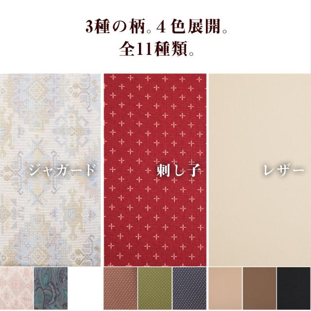 | カラー | 【ジャガード】 ベーズリー・ローズ・ブルー 【刺し子】 レッド・ネイビー・ブラウン・グリーン 【レザー】 アイボリー・ベージュ・ブラウン・ブラック |
