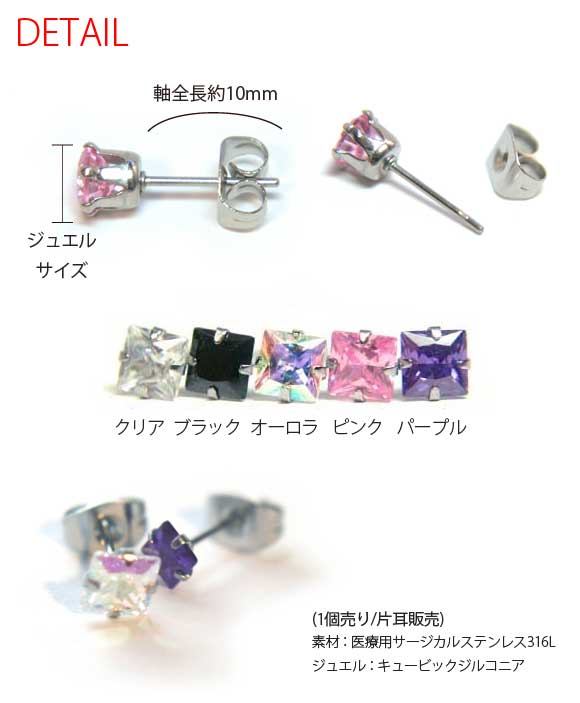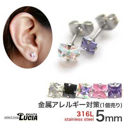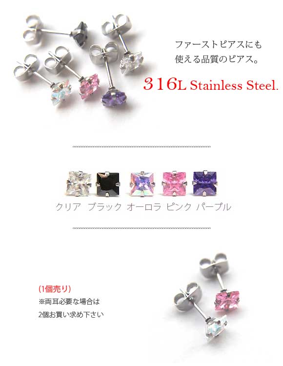 本日P2倍 ピアス 金属アレルギー 片耳 一粒ピアス シンプル スクエア 5mm 金属アレルギー対応 316L 高品質 ステンレス 立爪ジュエル ファーストピアス