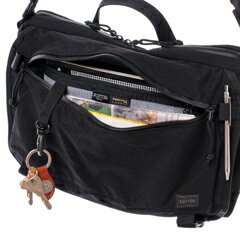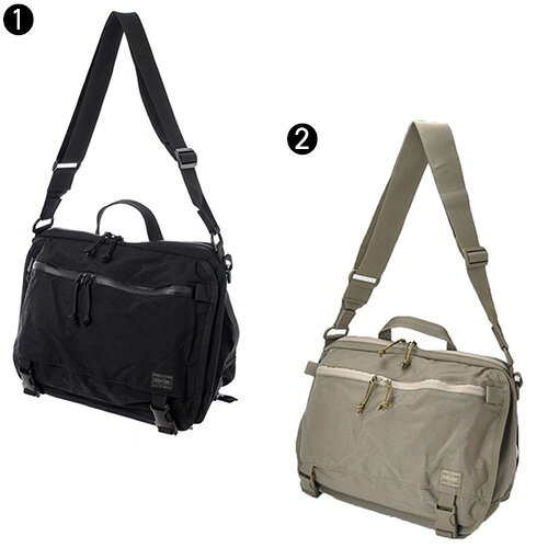 PORTER!楽にアイテム管理が出来るショルダーバッグ(L)≪送料無料≫商品:KLUNKERZ(クランカーズ)/ショルダーバッグ(L)カラー:1.ブラック,2.ベージュサイズ(約):横36×縦25×マチ14cm【ショルダーベルト】〜137cm素材:表:500D高密度コーデュラ(R)スパンナイロンオックス(表面:強撥水加工、裏面:PUコーティング)内装:ポケット部:420Dナイロンオックス(PUコーティング)付属:1000Dコーデュラ(R)ナイロンオックス重さ(約):650g備考:【メイン開閉】ダブルファスナー外側/Dカン×2内側/オープンポケット×1[前面]バックル、マジックテープ外側/ファスナーポケット×2(うち1つは中にファスナーポケット×1、キーフック×1)