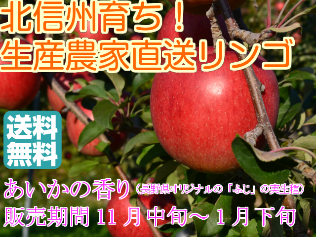 芳香と甘味が特徴的な信州オリジナル品種!信州産「あいかの香り」 中級ランク 約9.5〜10kg(20〜40玉)【送料無料(一部地域は有料)】11月20日頃より順次収穫&発送開始予定