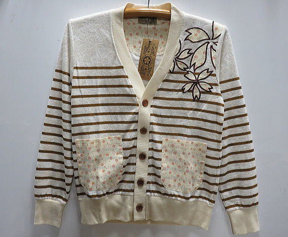 錦 和柄 杢ジャガードボーダーカーディガン 桜