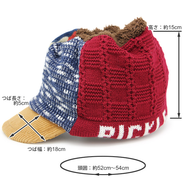 表地:アクリル%60 綿20% ポリエステル15% ナイロン5%、裏地:ポリエステル100%、つば:綿100%