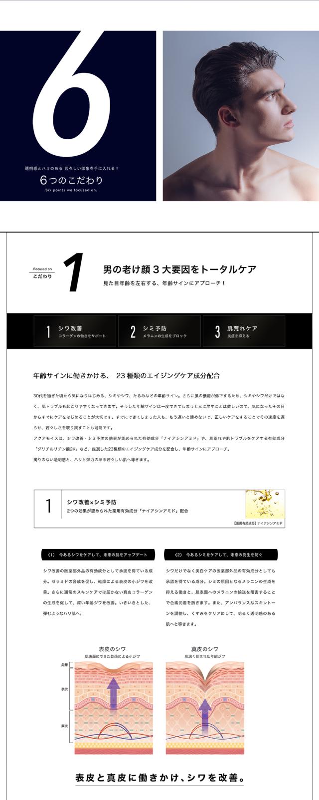 年齢を重ねるにつれて深まる、シミ、シワ、たるみ。そうした見た目年齢に大きな影響を与える、エイジングサインにアプローチする薬用オールインワン美容液です。ナイアシンアミド、グリチルリチン酸2Kと、薬用有効成分をダブル配合し、シワ、シミ、肌荒れなどの男の老け顔3大要因をトータルケア。さらに、男性特有の肌悩みにアプローチする美容成分を厳選配合し、濁りのない透明感と、ハリと弾力のある若々しい肌へ導きます。化粧水、乳液、美容液、クリームがこの1本に集約されているので、ひと塗りでお手入れ完了。忙しい毎日でも余裕のスキンケアで、肌も心も軽やかで健やかな毎日を。 【医薬部外品】効果認可[シワ改善][シミ予防][抗炎症]