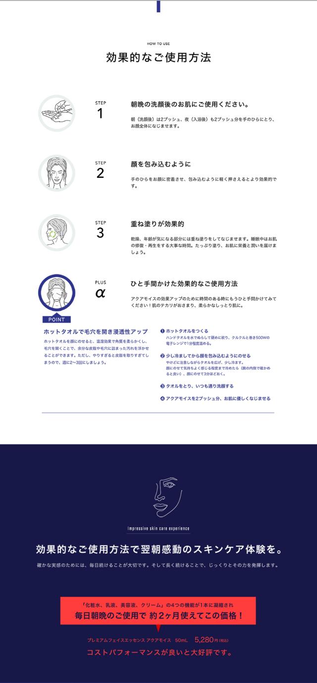 - 梱包は、商品が動かないよう、段ボール箱にわら半紙が詰められ、注文分3本とオマケ1本が入れられてました。商品の箱は、光沢ある白と青でデザインされ、少し高級感があります。早速開封して使ってみました。プッシュ式で液が出るので、大体一定量取り出せるのは良いですね。使い心地も、すぐ浸透するのかしっとりサッパリとしてますので、バタバタな朝でも、使いやすいかなと思います。 ただ、顔全体に馴染ませるのに2プッシュでは、大体の人は広げられないと思います。私は気温や湿度によると思うのですが、4から5プッシュ必要です。まぁオマケの1本でフォロー出来るので、良くも悪くもお得感は半減したかも…(泣) 使い心地は良いので、これでシワの改善とかが出来たら良いなと信じ、使っていきたいと思います。