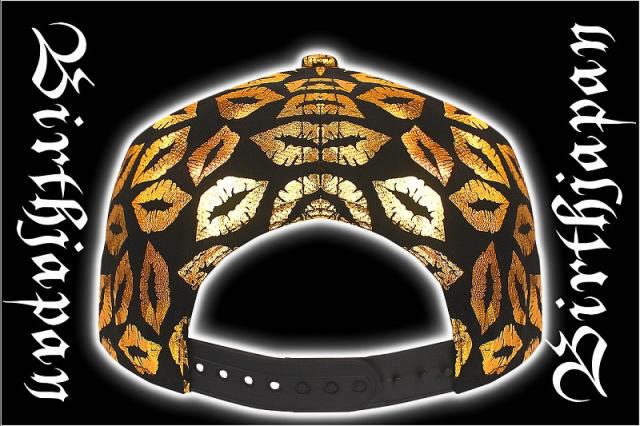 帽子86黒×金 B系&HIPHOP系キスマーク総柄×刺繍キャップ メンズ悪羅悪羅系オラオラ系半グレ輩ラグヤンキーチンピラチャンプロード 悪党の店 バースジャパン BIRTHJAPAN