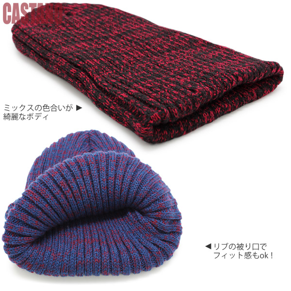 色合いがお洒落なミックスカラーのニットキャップのご紹介です。やや厚手のしっかりと保温力のある構造☆伸縮性もあり、頭に沿う形ですが、フィットしても嫌なチクチク感はほとんどありません。余分な飾り付けのないシンプルなリブ編みで、カジュアルや綺麗めの外しアイテムになど、メンズ、レディース問わずどんなスタイルにも合わせ易い、ベーシックなニットキャップです。