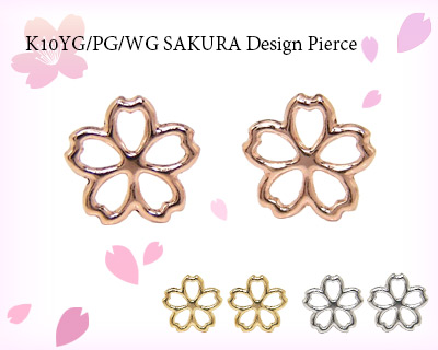 桜 さくら サクラ ピアス K10YG/PG/WG 10k 10金 イエロー ピンク ホワイト ゴールド