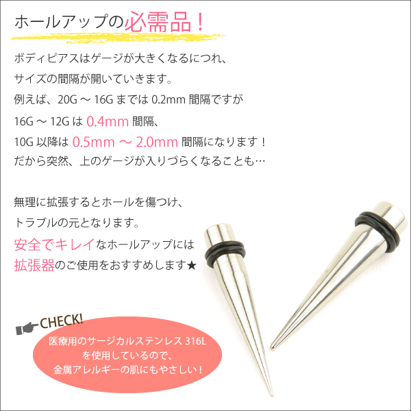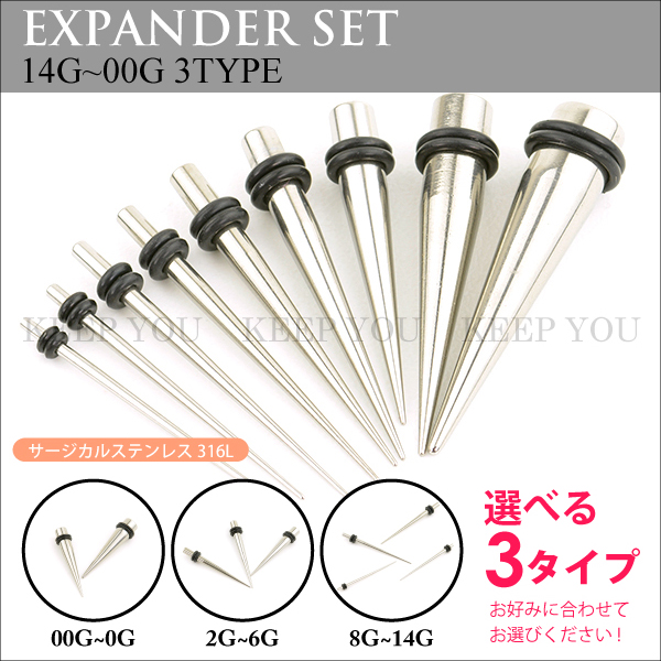 【メール便対応】◆福袋◆ 拡張器 エキスパンダー 3タイプから選べる! 14G(1.6mm)〜00G(10mm) サージカルステンレス316L セット ┃