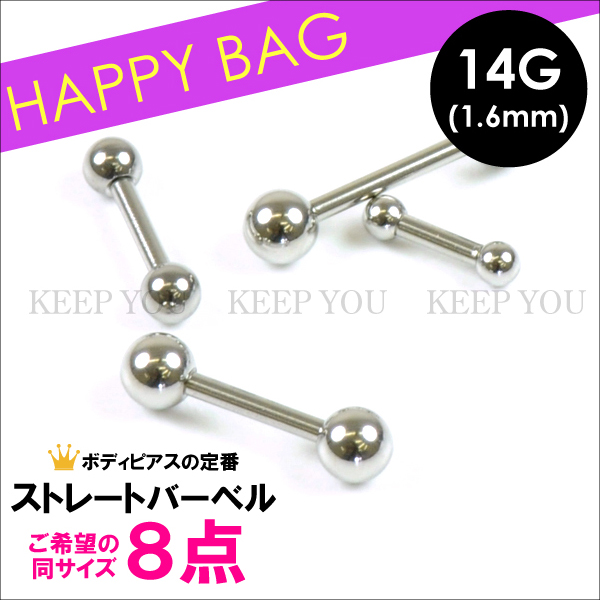 【メール便対応】【8個セット福袋】ショート ストレート バーベル 14G(1.6mm) サージカルステンレス316L(医療用) ボディーピアス 定番 トラガス 軟骨 スタンダード お得セット 14ゲージ┃