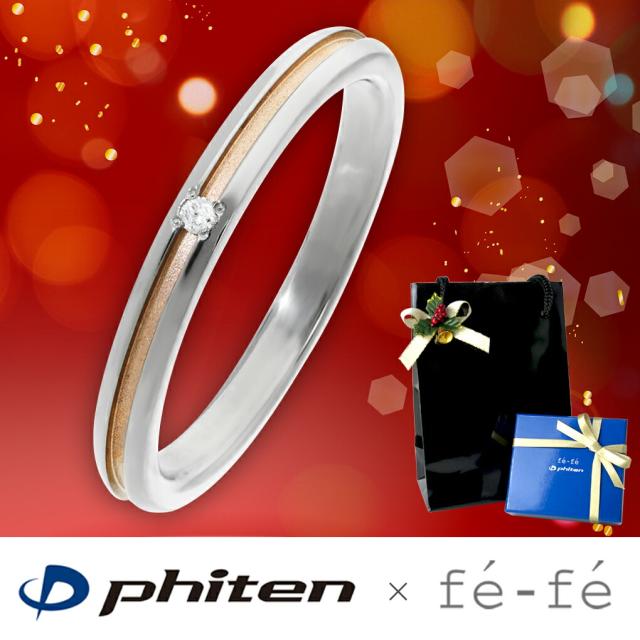 【fe-fe×phiten】平打ち ピンクゴールドライン ダイヤモンド チタン リング 6〜12号/レディース/指輪/スポーツ/マラソン/送料無料