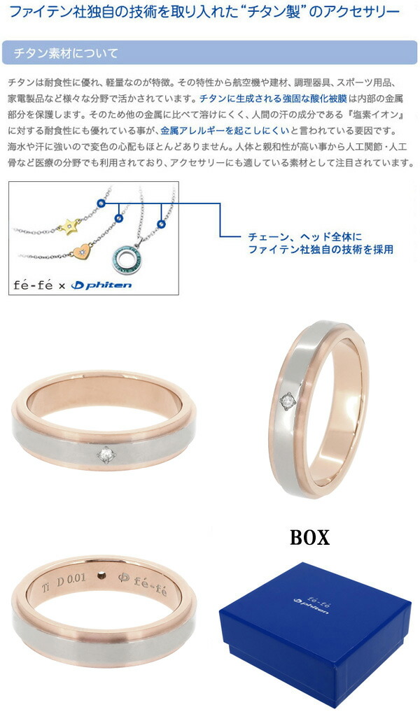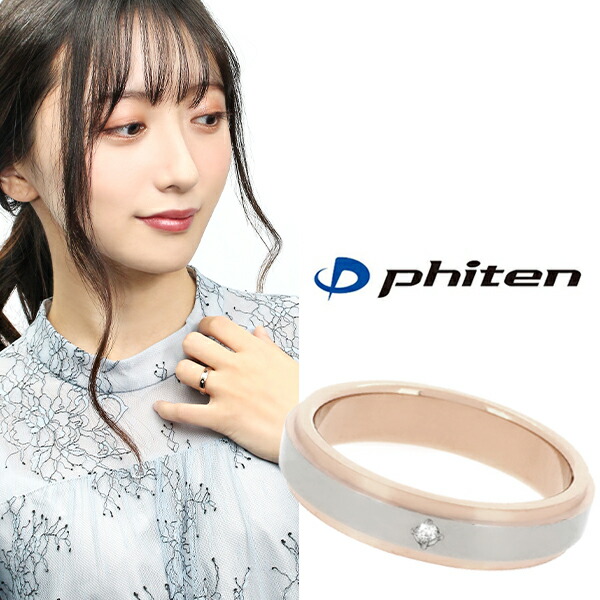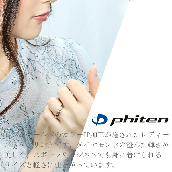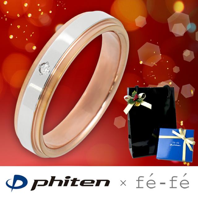 【fe-fe×phiten】平打ち ピンクゴールド ライン ダイヤモンド チタン リング 8〜14号/レディース/指輪/スポーツ/マラソン/送料無料