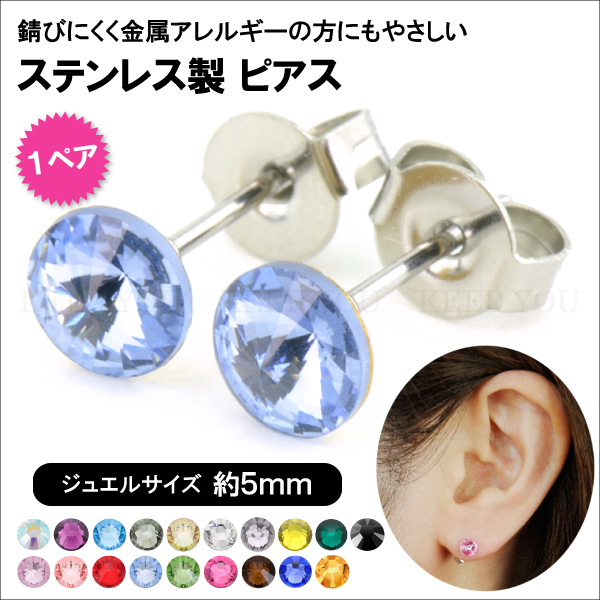 【メール便対応】≪約5mm ラインストーン≫ ステンレスピアス(1ペア) 20G(0.8mm) ボディピアス メンズ レディース-002 キャッチピアス 金属アレルギー対応 ノンアレルギー ┃