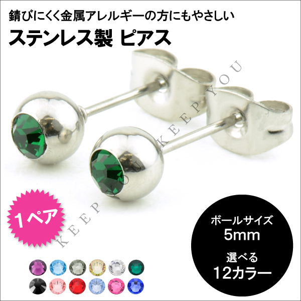 【メール便対応】≪ジュエル付 ボールタイプ≫ ステンレスピアス(1ペア) 20G(0.8mm) ボディピアス メンズ レディース-004 キャッチピアス 金属アレルギー対応 ノンアレルギー ┃