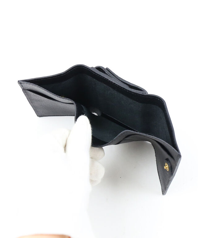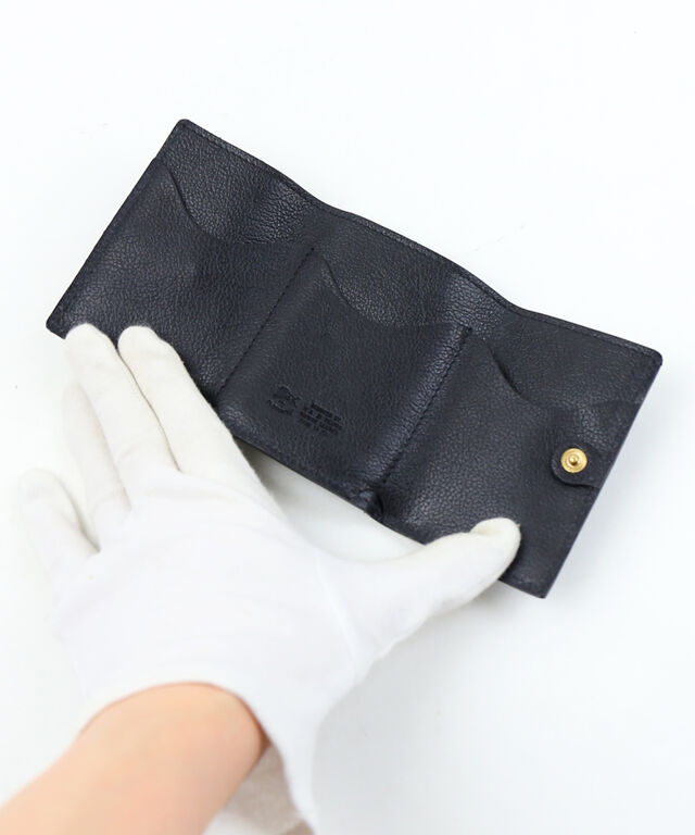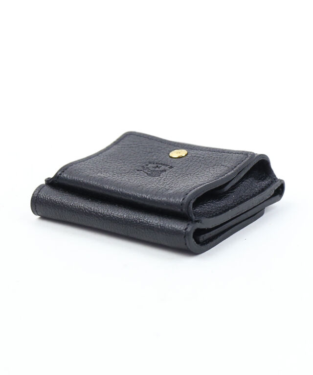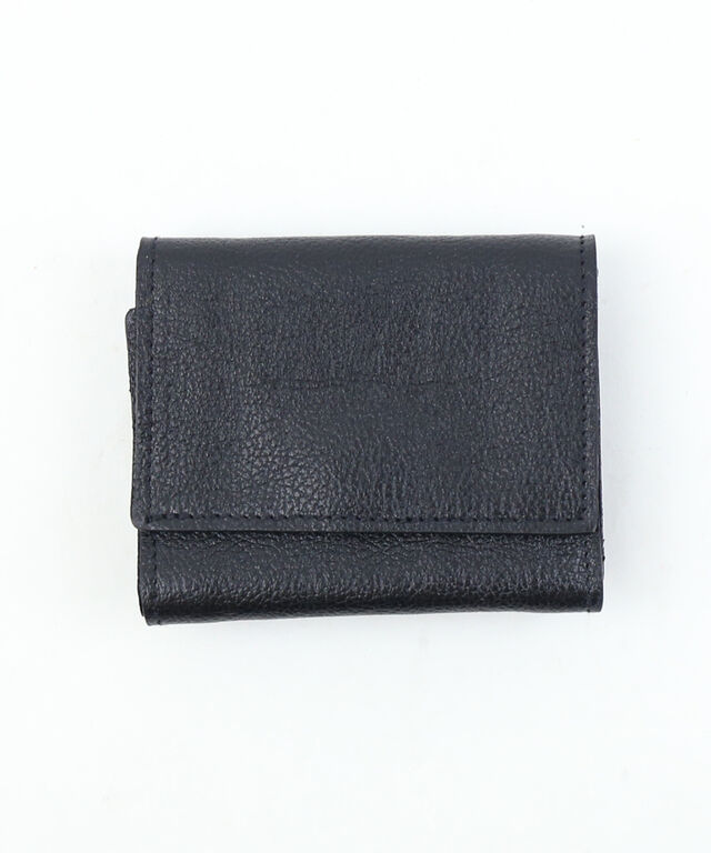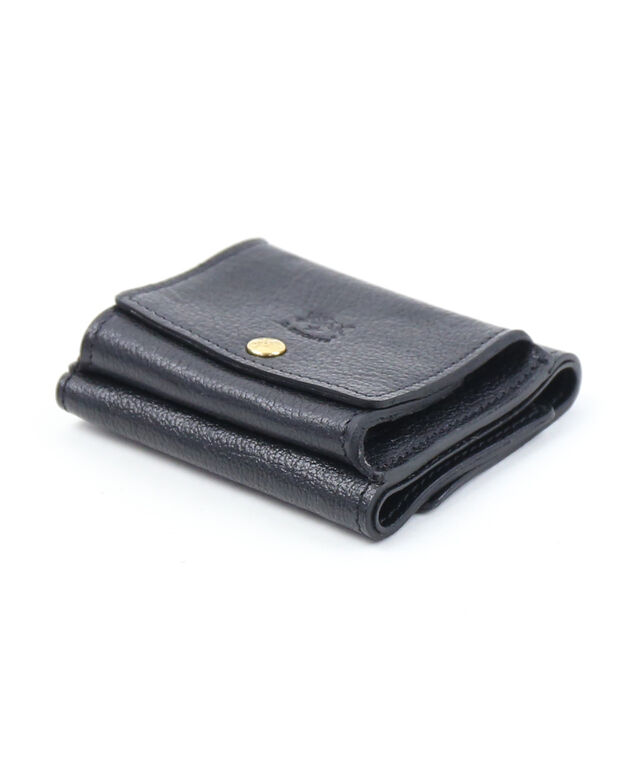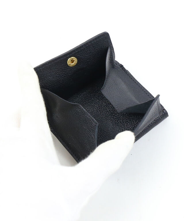 立体的に開くコインケースを外付けした、三つ折りレザーウォレットです。