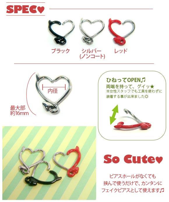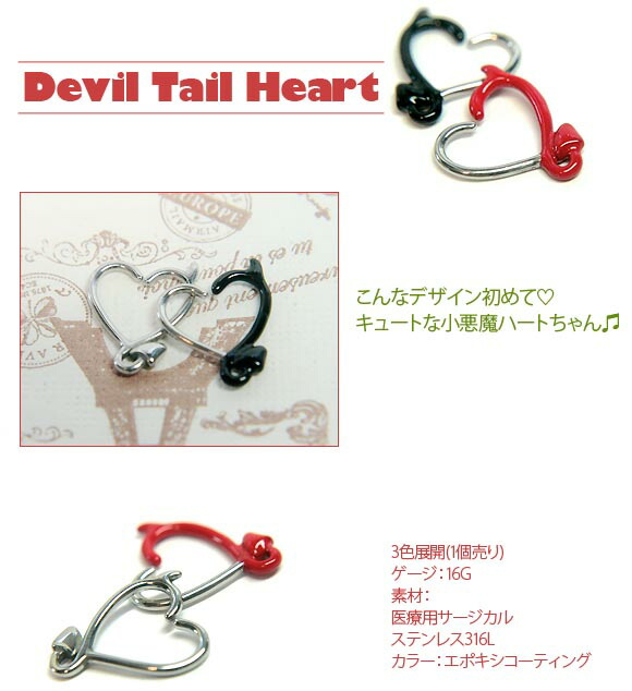 本日P2倍 16G ピアス ボディピアス シームレスリング デビルテール ハート 子悪魔 しっぽ 軟骨ピアス 金属アレルギー対応 316L 高品質 ステンレス
