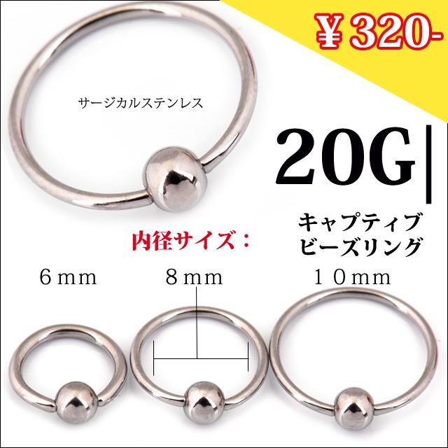 ボディピアス 20G スタンダード キャプティブビーズリング リングピアス ロブ 軟骨ピアス ステンレスピアス