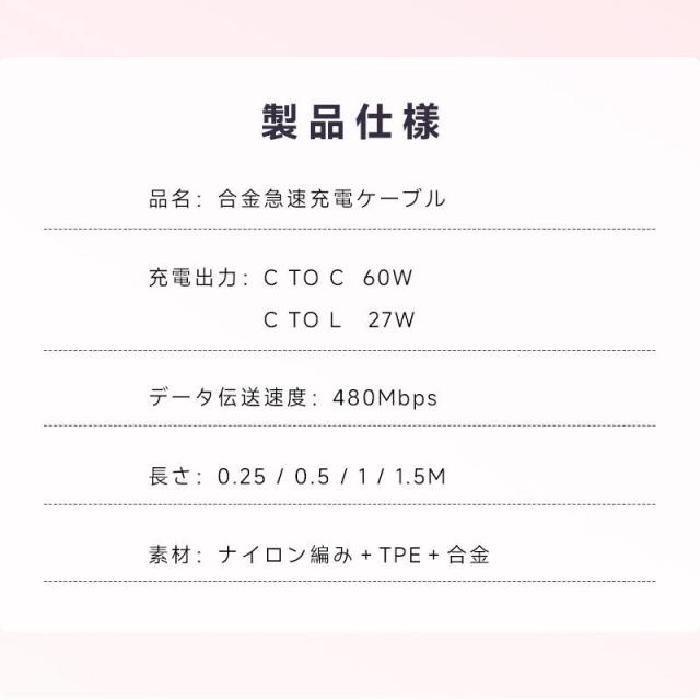 iPhoneケーブル 全機種対応 Type-c ケーブル PD60W 長さ0.25m 0.5m 1m 1.5m急速充電 データ転送 iPad iPhone17 Air 16 15 14 13 12pro max SE 【PL保険済み安心】