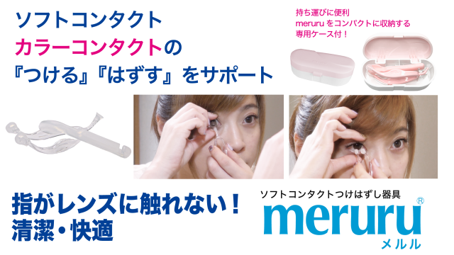 メルルはソフトコンタクトやカラーコンタクトを指を使わずに“つける” “はずす”ができる画期的な商品です。