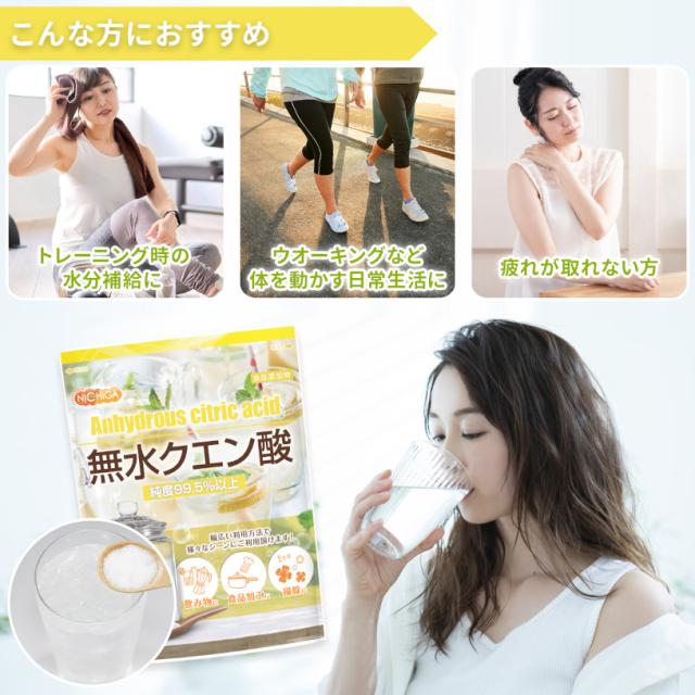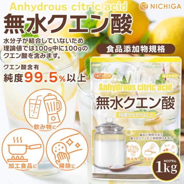 無水クエン酸 1kg 【メール便専用品】【送料無料】 食品添加物規格 純度99.5%以上 粉末 [01] NICHIGA(ニチガ)