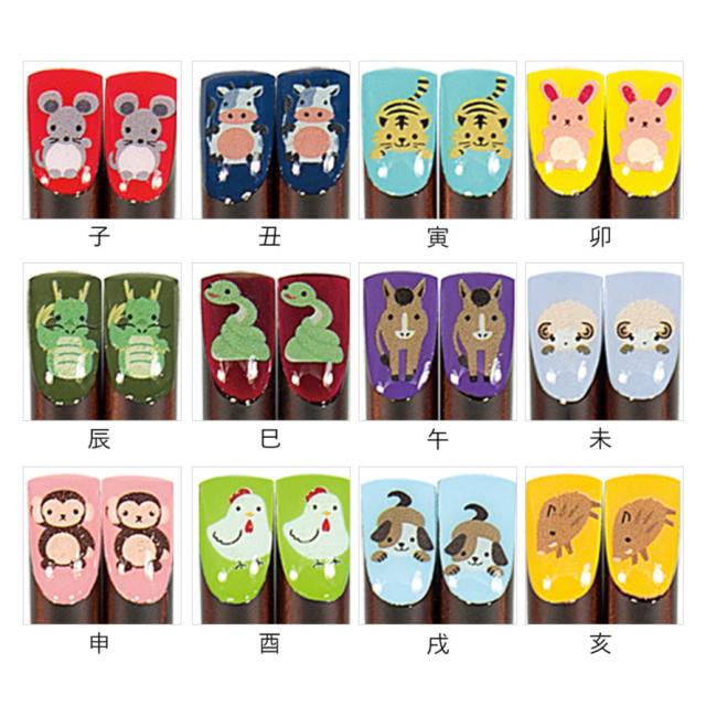 日本人にゆかり深い「干支」。持ち手の部分に可愛い干支のイラストが描かれたお箸です。