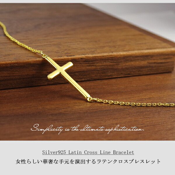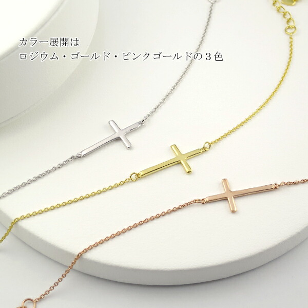 選べる3カラー ラテンクロス ブレスレット 15〜18cm シルバー925 シルバー ゴールド ピンクゴールド クロス 十字架 金色 華奢 細め