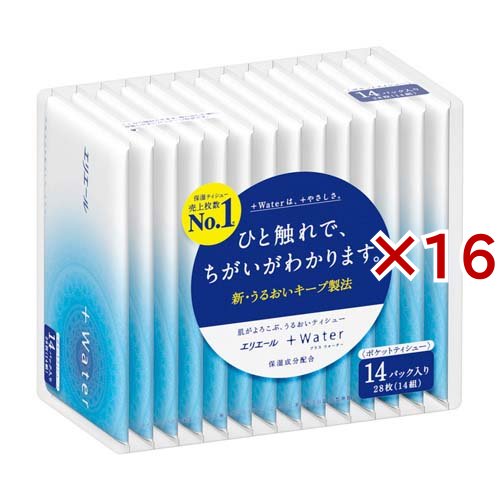エリエール プラスウォーター ポケットティシュー(14パック*16コセット)[ポケットティッシュ]