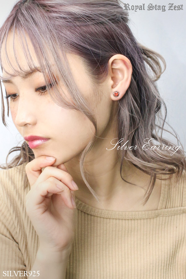 【Royal Stag ZEST】 ブラックカラー 一粒 レッドジルコニア シルバーピアス (1P/片耳用)