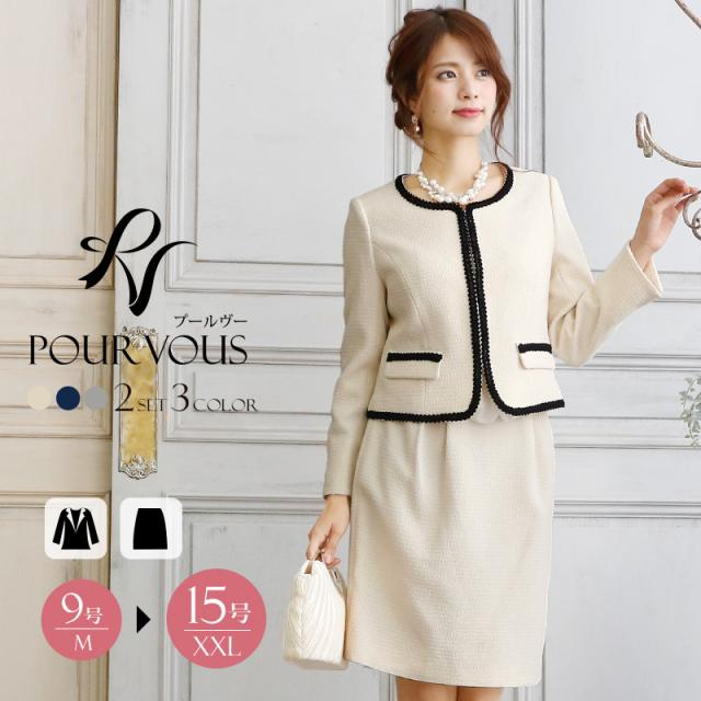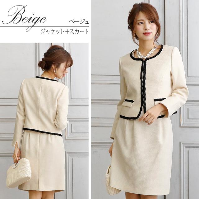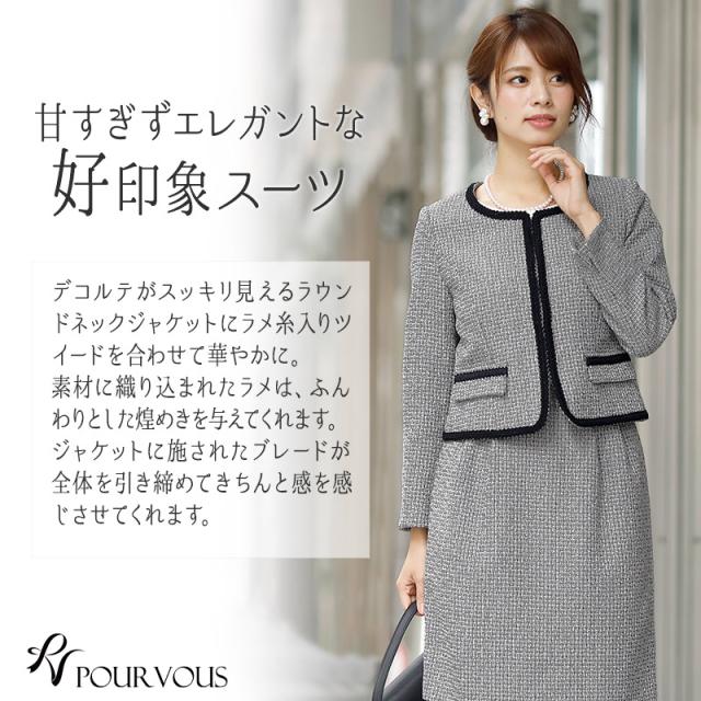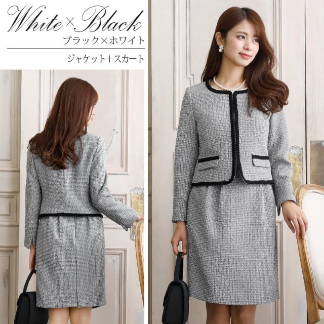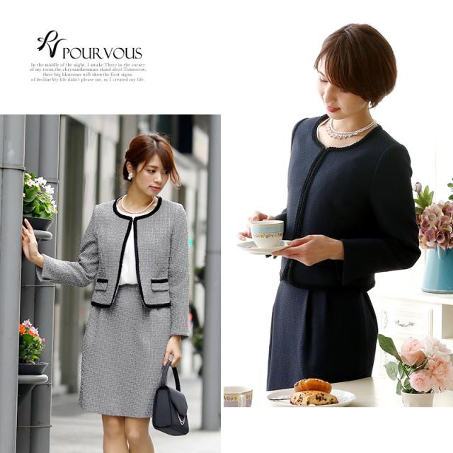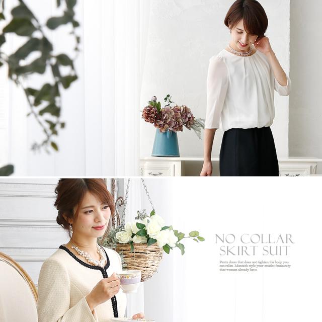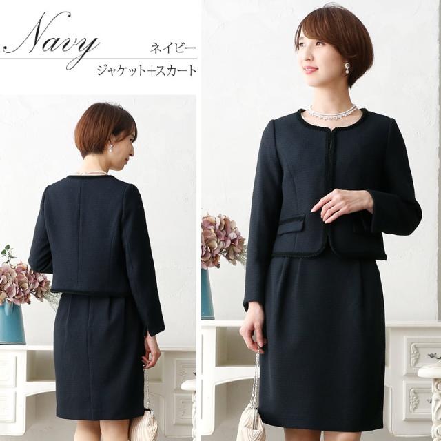ノーカラースカートスーツ【1721】20代・30代・40代・50代長袖・膝丈・ツイード・体型カバー・ジャケット・テーラード・スーツ・大きいサイズなど・即日発送・送料無料結婚式・婚活・披露宴・顔合わせ・二次会・同窓会・お呼ばれ・食事会・謝恩会・親族・七五三・お宮参り・冠婚葬祭・弔事・女子会・デート・入学式・卒業式・入園式・卒園式・ママ・マタニティー・セレモニー・セレブ・パーティー