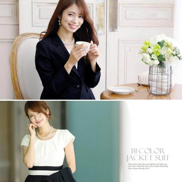 バイカラージャケットスーツ【1723】20代・30代・40代・50代長袖・膝丈・セットアップ・バイカラー・体型カバー・ジャケット・テーラード・スーツ・大きいサイズなど・即日発送・送料無料結婚式・婚活・披露宴・顔合わせ・二次会・同窓会・お呼ばれ・食事会・謝恩会・親族・七五三・お宮参り・冠婚葬祭・弔事・女子会・デート・入学式・卒業式・入園式・卒園式・ママ・マタニティー・セレモニー・セレブ・パーティー