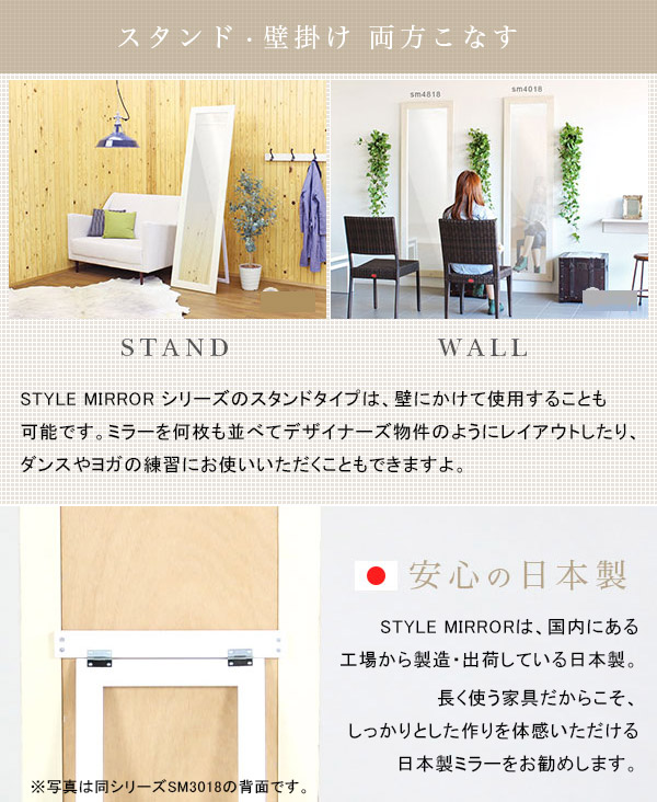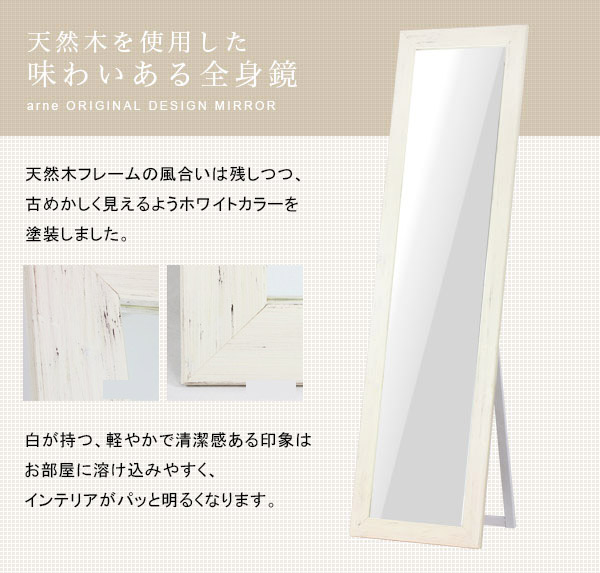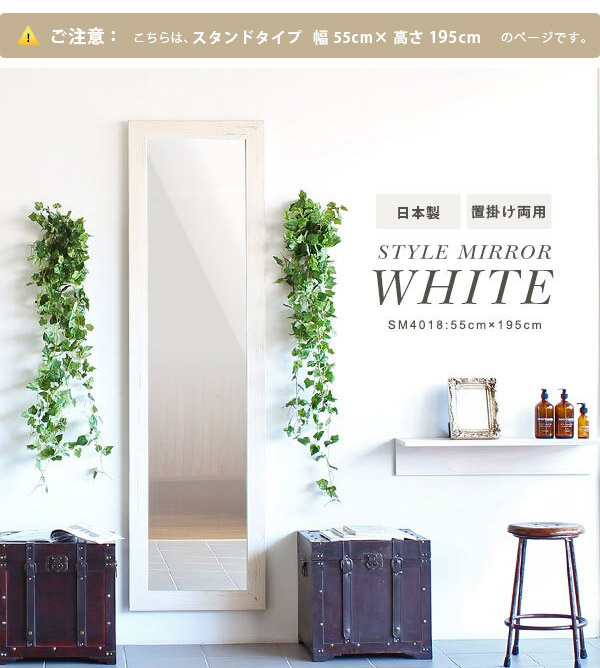 スタンドミラー おしゃれ 姿見 アンティーク調 ホワイト 白 木枠 鏡 ミラー 木製 西海岸風 style SM4018 ▽